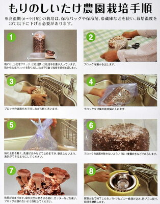 サイズ(パッケージ):160×160×205mm 本体:直径13×高さ15cm 重量:約1.7kg 主原料:国産広葉樹オガコ、栄養材 付属品:栽培手引き書、栽培袋 発芽期間:秋10〜翌年春3月頃まで 栽培温度(しいたけ):10〜20度 栽培温度(えのきたけ):10〜18度 (夜間の最低温度が15度以下まで下がる場所) 【栽培手順】しいたけの場合 1.箱からブロックを取り出し、栽培説明書で栽培手順を確認します。