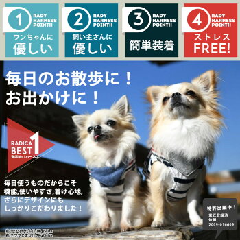 ■お散歩グッズまとめ買いクーポン対象■*1点のみメール便選択可*【犬 イヌ ドック dog 小型犬 犬用】 多色展開 *L/LL/FBサイズ* 犬具 胴輪 ハーネス 散歩 お出かけ 簡単装着 ヒッコリー RADICA ラディカRADYハーネス